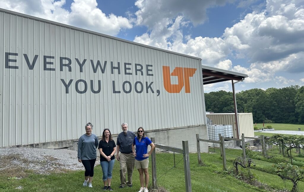 Members of the research team at the Highland Manor Winery in Jamestown, Tennessee. Left to right are Rhonda Moody, Alicia Rihn, David Hughes and Karen DeLong. Photo courtesy UTIA.